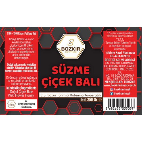 Etiketler: Bozkır Tarımsal Süzme Bal 250gr Kırmızı Etiket